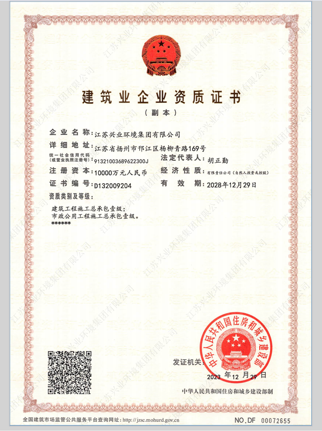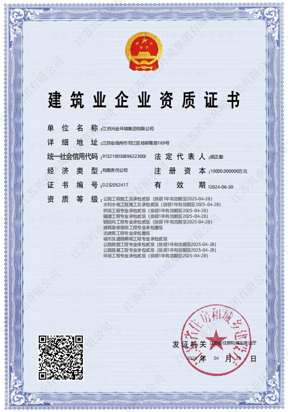 古建筑、装饰装修壹级;公路、水利、桥梁、隧道、钢结构、环保、路面、路基、城市及道路照明工程贰级
