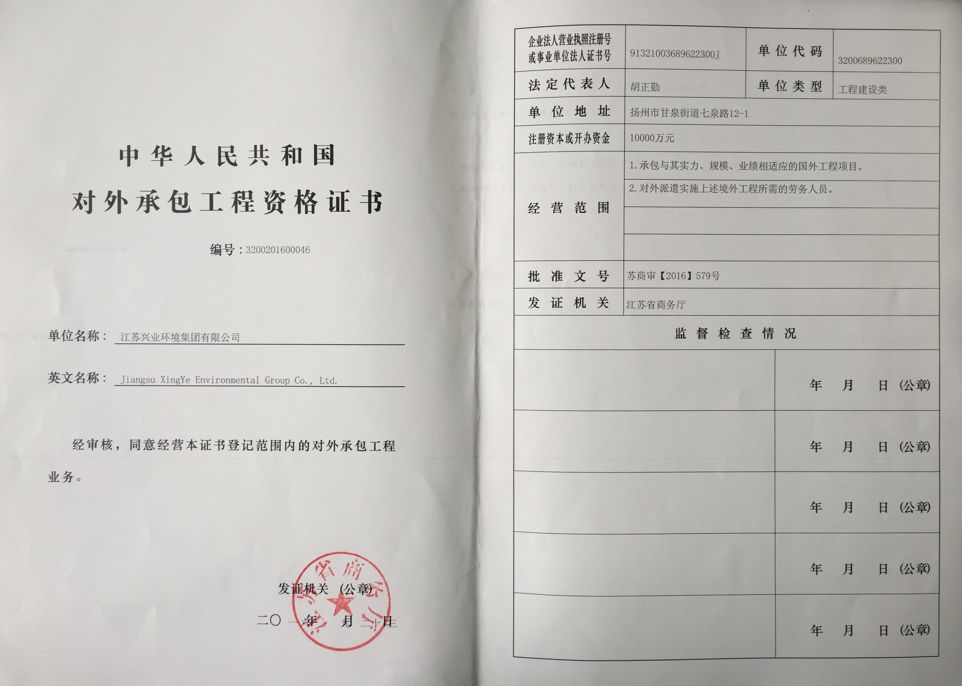 对外承包工程资格证书