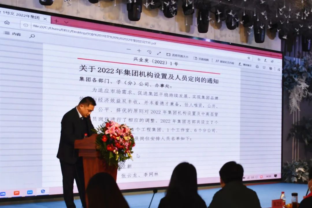 胡正勤董事长表示,2022年是集团成立20周年的喜庆之年。二十年、新台阶、新征程、新成就!集团将“稳字当头、稳中求进”,以变促进、以进促稳。我们将在市场开拓、项目管理、财务管理、机构设置、人事管理等方面进行一系列的改革。