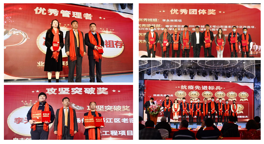 在定岗通知后,年会盛典隆重举行了表彰仪式。2021年是全民抗疫的一年,也是企业举步维艰的一年。集团全体员工共克时艰、锐意进取、不忘初心、砥砺前行,涌现出了一批成绩显著、勇于创新、表现突出的集体和个人。