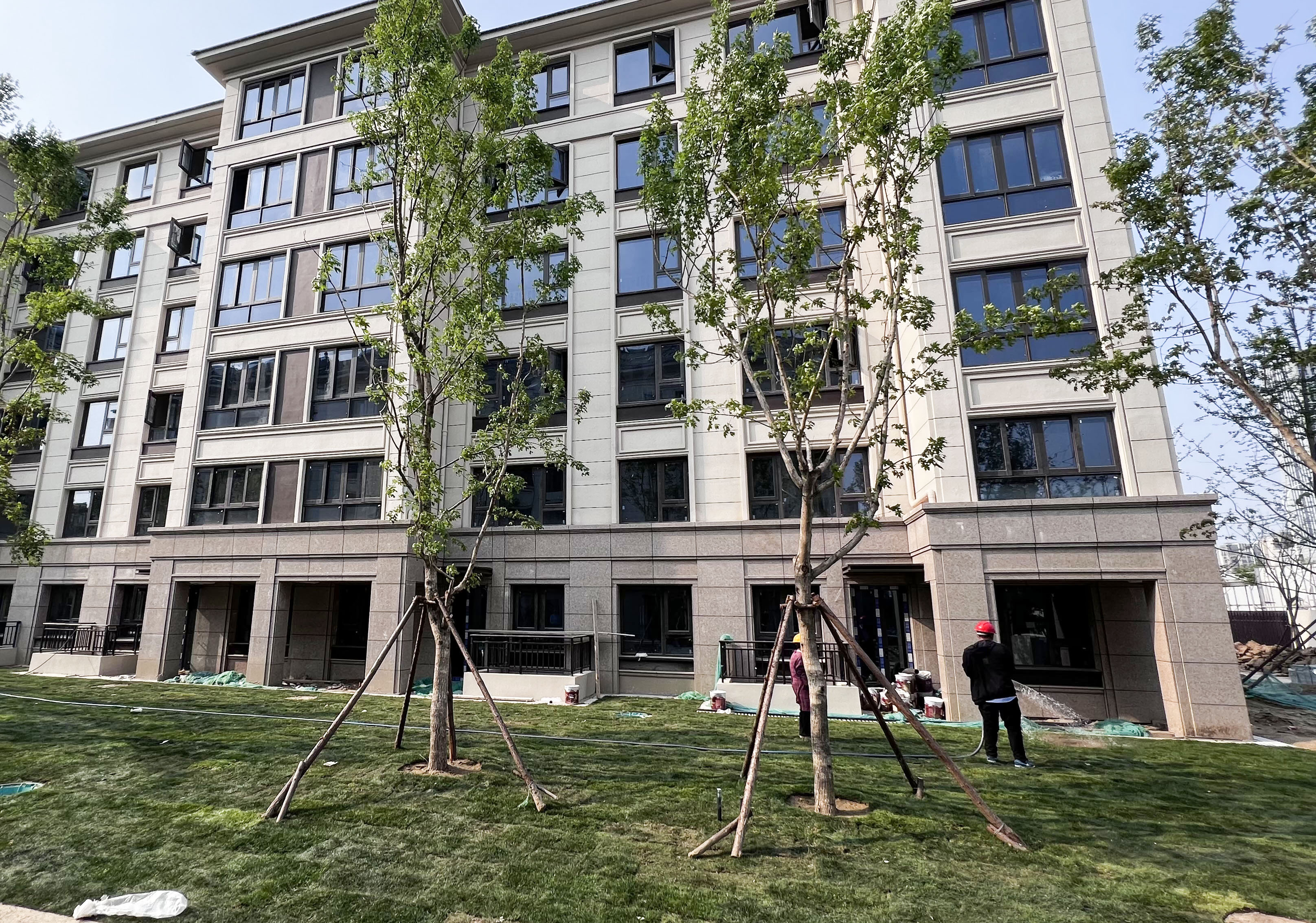 扬州郡宸府项目最新消息目前草坪及道路开始铺设。