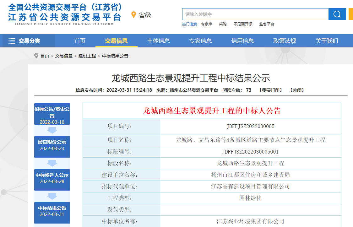 近日,江苏兴业环境集团喜中江都区“龙城西路生态景观提升工程”项目。该项目建设单位为扬州市江都区住房和城乡建设局。项目位于扬州市江都区龙城西路,工程范围含龙城西路生态景观提升工程与各类小品的新建、绿化景观提升、道路拓宽翻新以及亮化改造等。