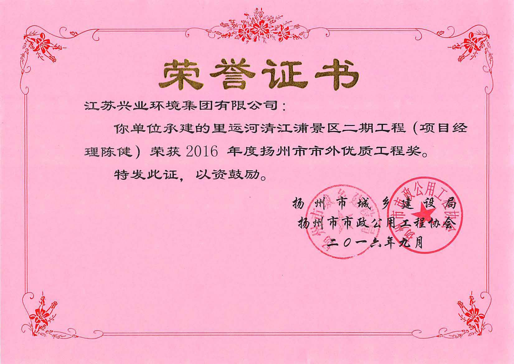 2016年度扬州市先进企业