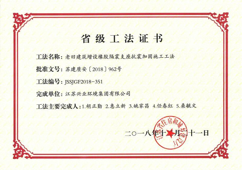 2018年度江苏省省级工法