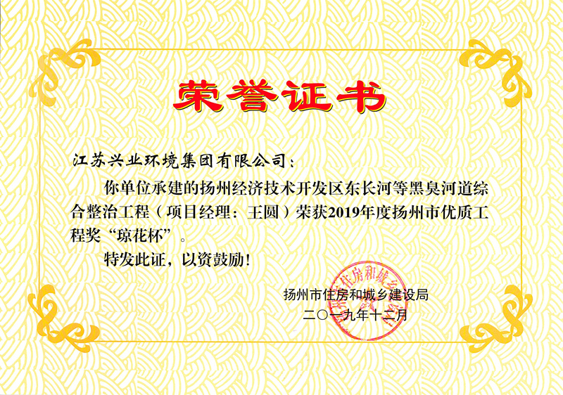 2019年度扬州市优质工程奖“琼花杯”