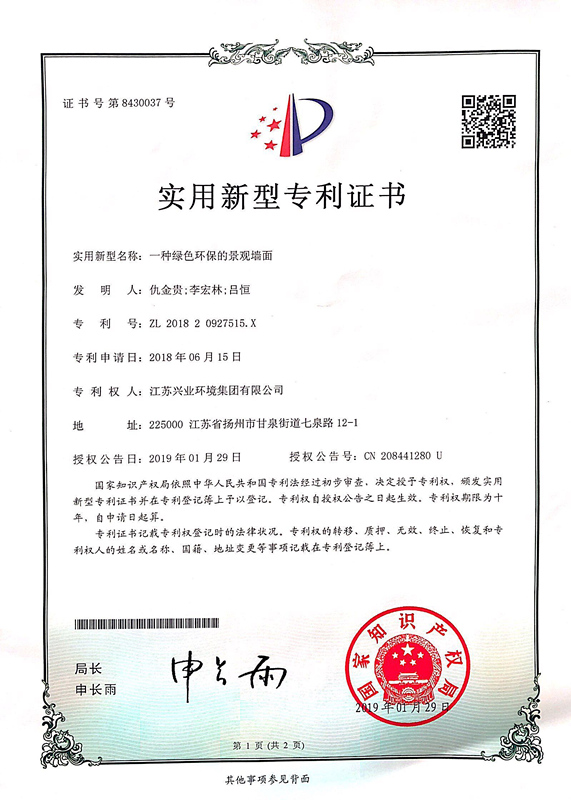 2019年实用新型专利(一种绿色环保的景观墙面)