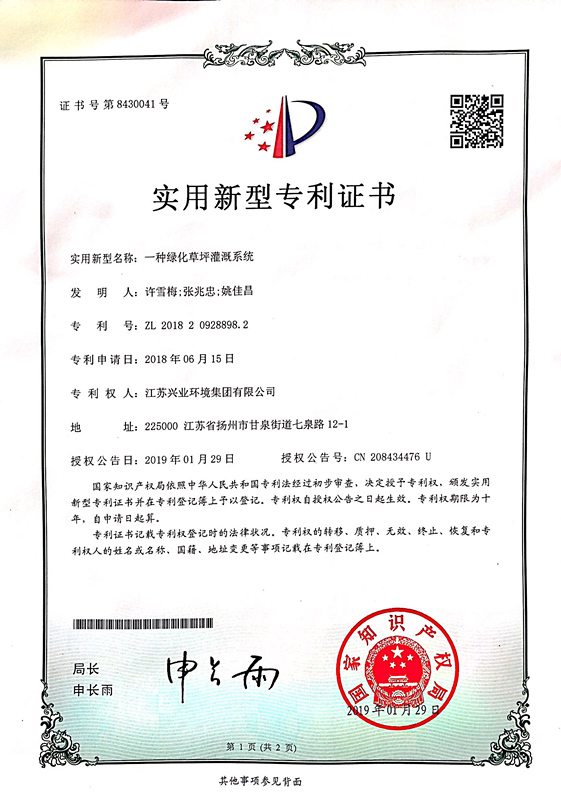 2019实用新型专利(一种绿化草坪灌溉系统)