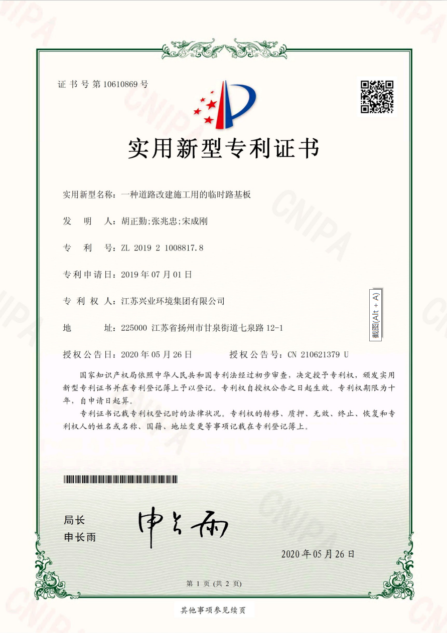 2020年实用新型专利(一种道路改建施工用的临时路基板)